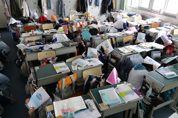 活动前,威海二中根据学校实际情况制定了防震减灾疏散演练方案,并下发到每个班级,由班主任带领学生进行认真学习。5月12日上午,随着警报声的响起,防震减灾应急疏散演练正式开始。按照分工,全体工作人员严格按照突发事件应急预案迅速进入各自岗位。现场指挥下达命令,各班迅速打开教室门,师生双手抱头,以课桌、墙角为掩体躲避起来;一分钟后,现场指挥发布了马上撤离的命令,各班迅速按照安全疏散路线,在工作人员的指挥下快速有序的离开教学楼,撤离到安全地带。班主任立即清点本班人数并上报活动总指挥。整个疏散演练过程环节衔接紧凑,全体人员严肃、紧张、快速、有序,达到了演练的预期目的。