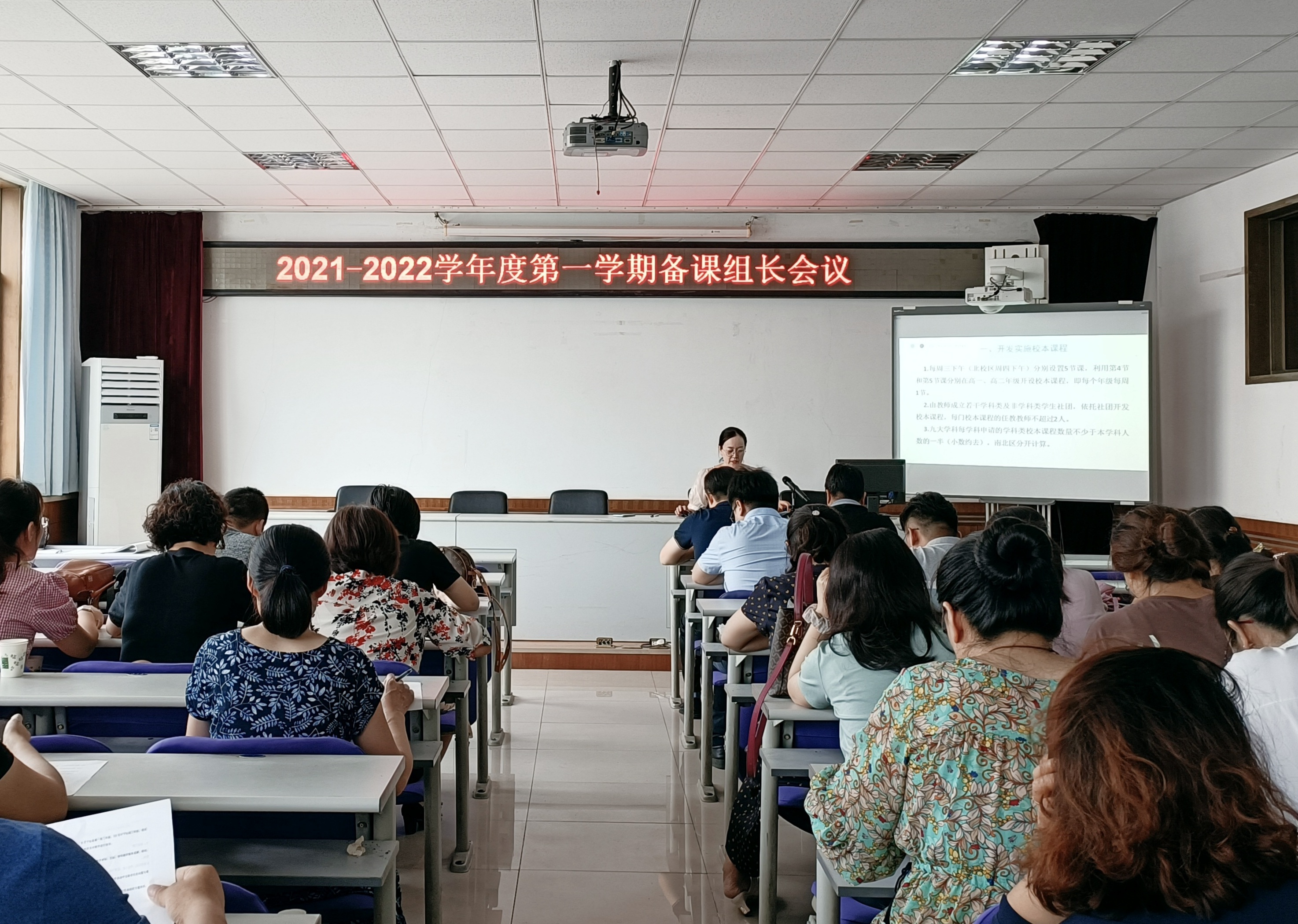 各年级分别召开全体教师会议。会议首先传达了备课组长会的要求,并结合本年级实际情况,部署新学期教学工作。高一年级要稳步实现初高中的教学衔接,帮助学生迅速适应高中学习,并重点关注学生的习惯养成。高二年级强调要优化教学流程,把分层教学落到实处,多措并举努力实现“双百”目标。高三年级组织教师集体学习了习总书记“七一”重要讲话,要求在讲话精神的引导下,凝心聚力,有序开展一轮复习,全力备战2022年高考。