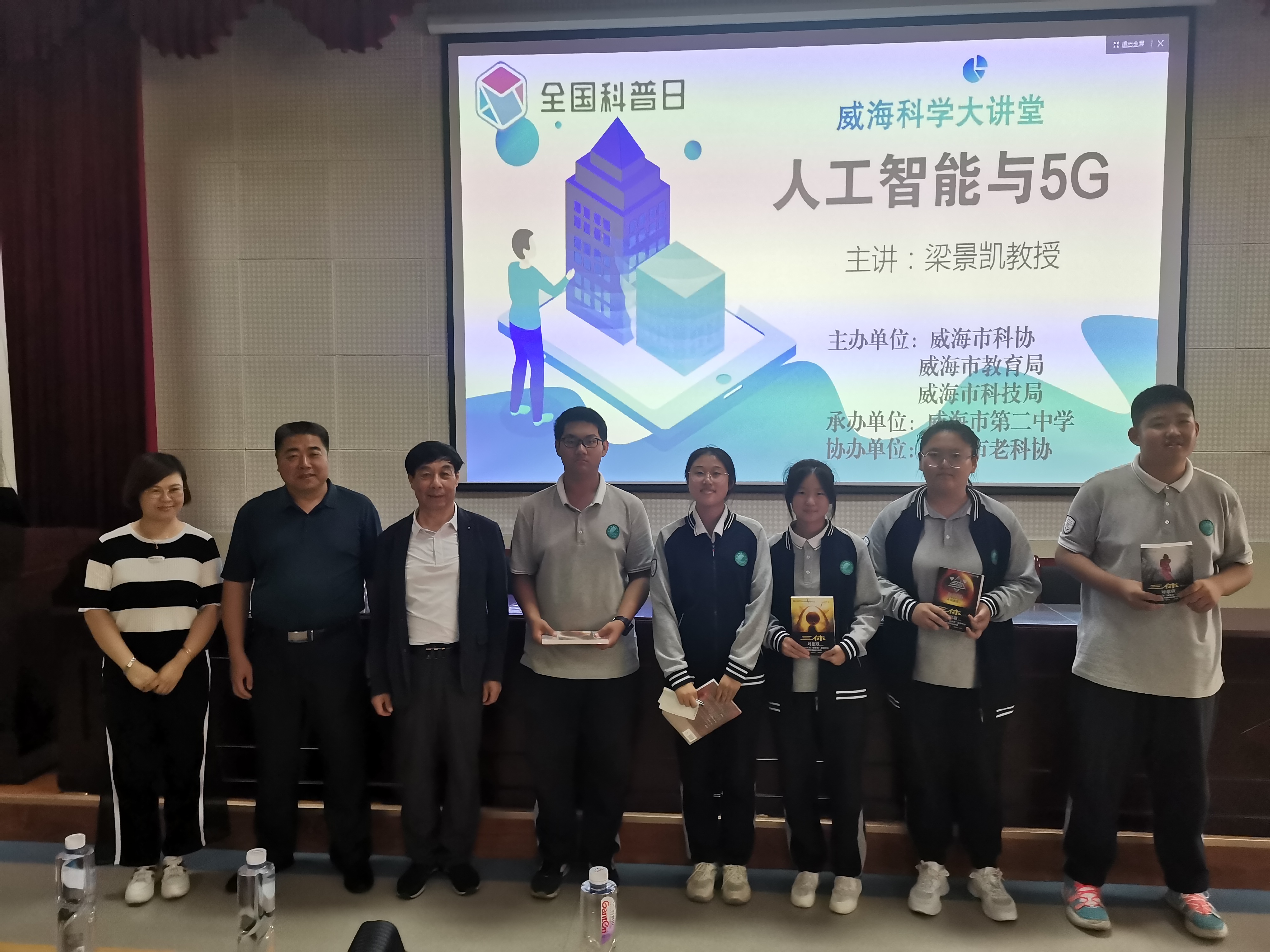 为营造人人做科普,科普为人人的良好氛围,围绕全国科普日主题,培养学生的创新精神,激发学生爱科学、讲科学、用科学的热情,促进学生科学素养的全面提高,9月17日,由威海市科协主办的《新一代信息技术——人工智能与5G》科普讲座,在威海二中北校区永怀讲堂举行。