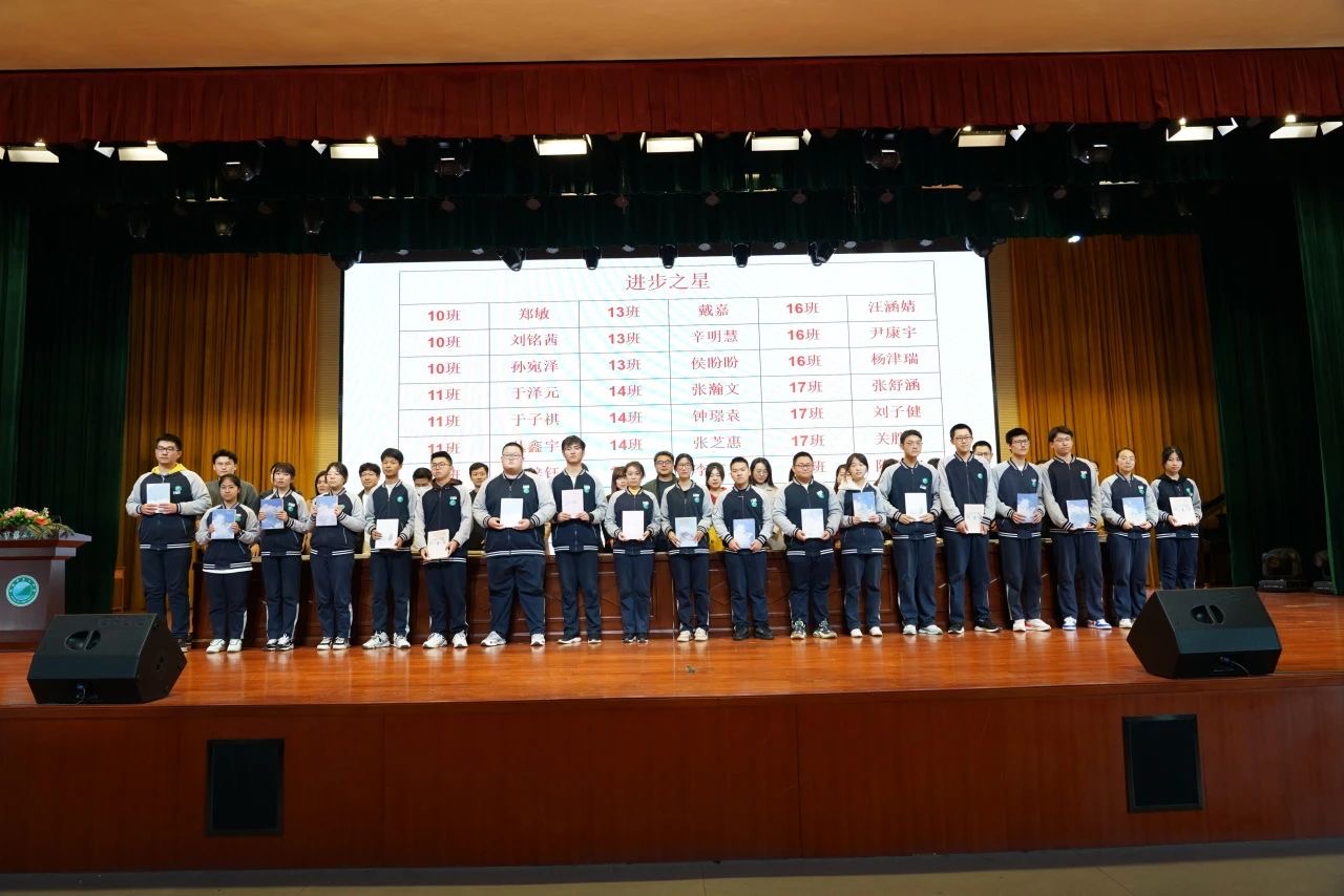 星光不问赶路人,时光不负有心人。本次大会首先公布了南北校区期中考试获奖同学名单,由各班主任为获得年级“学习之星”、“单科优胜奖”、“进步之星”的同学颁发荣誉证书及奖品,鼓励他们再接再厉,追求卓越,激励全体同学见贤思齐,踔厉奋发,争创一流。