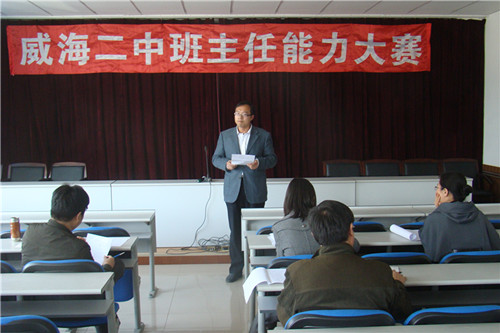 班主任是一个班级的组织者、领导者、教育者,在学校工作中起着非常重要的作用。为贯彻落实威海市教育局市直高中“十二五”发展规划的精神,努力培养一批师德高尚、专业能力强、有教育智慧的班主任工作带头人,展示我校德育工作者的技能和风采,我校于2011年4月中旬举行了班主任能力大赛。