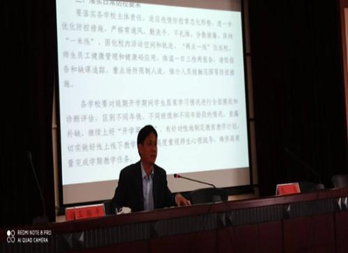 会上,张良校长总结了疫情期间高一级部线上教学的情况,并给予高度评价,要求抓实高一复学后“一测、二补、三衔接”教学工作,做到防疫防控工作不松懈。刘中山副校长对疫情期间高一级部线上教学的教师典型与模范事迹进行了表扬,要求广大教师做好线上线下课程的有效衔接,并对新学期教学工作做了部署。谷主任对复学后的防疫及教学工作作了更加详尽的要求。他要求做好高一师生健康状况监控,严格落实师生员工晨午晚检制度和“一日两报告”制度,人人熟知突发疫情应急处置方案;按照计划认真严格执行,切实做好“一测、二补、三衔接”教学工作;稳定走班教学过渡期各项工作;扩大优势,继续加强尖子生培养;认真备考四科学业水平考试;落实五项年级重点工作。