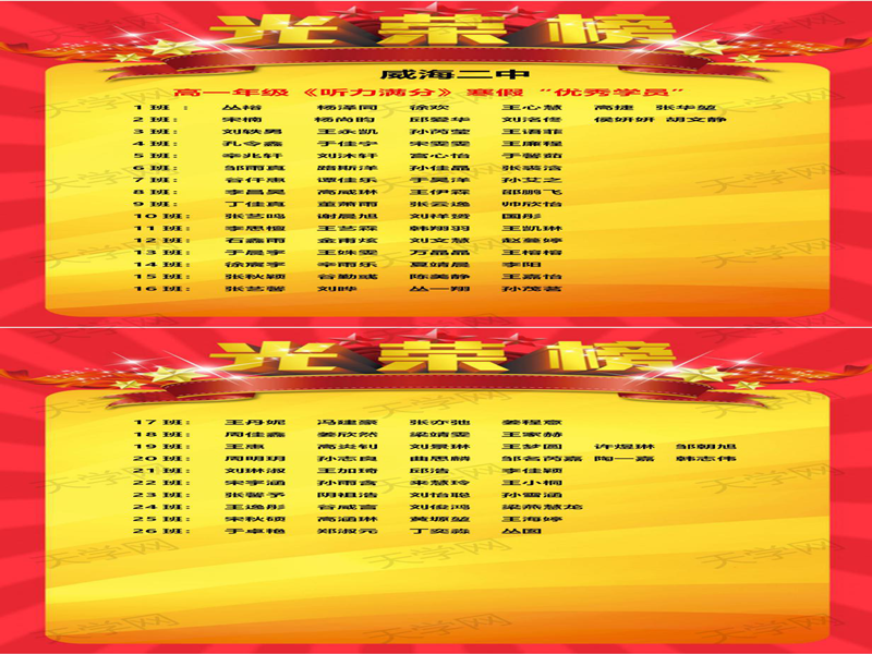 为表扬先进,总结得失,树立榜样,本周英语组对寒假英语“听力满分特训营”中表现优秀的同学予以奖励,肯定他们的优异成绩,鼓励他们再接再厉,同时也激励其他同学在今后英语学习中,与优秀同行!