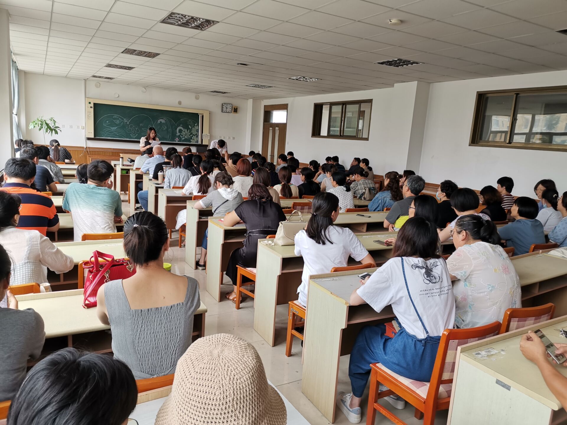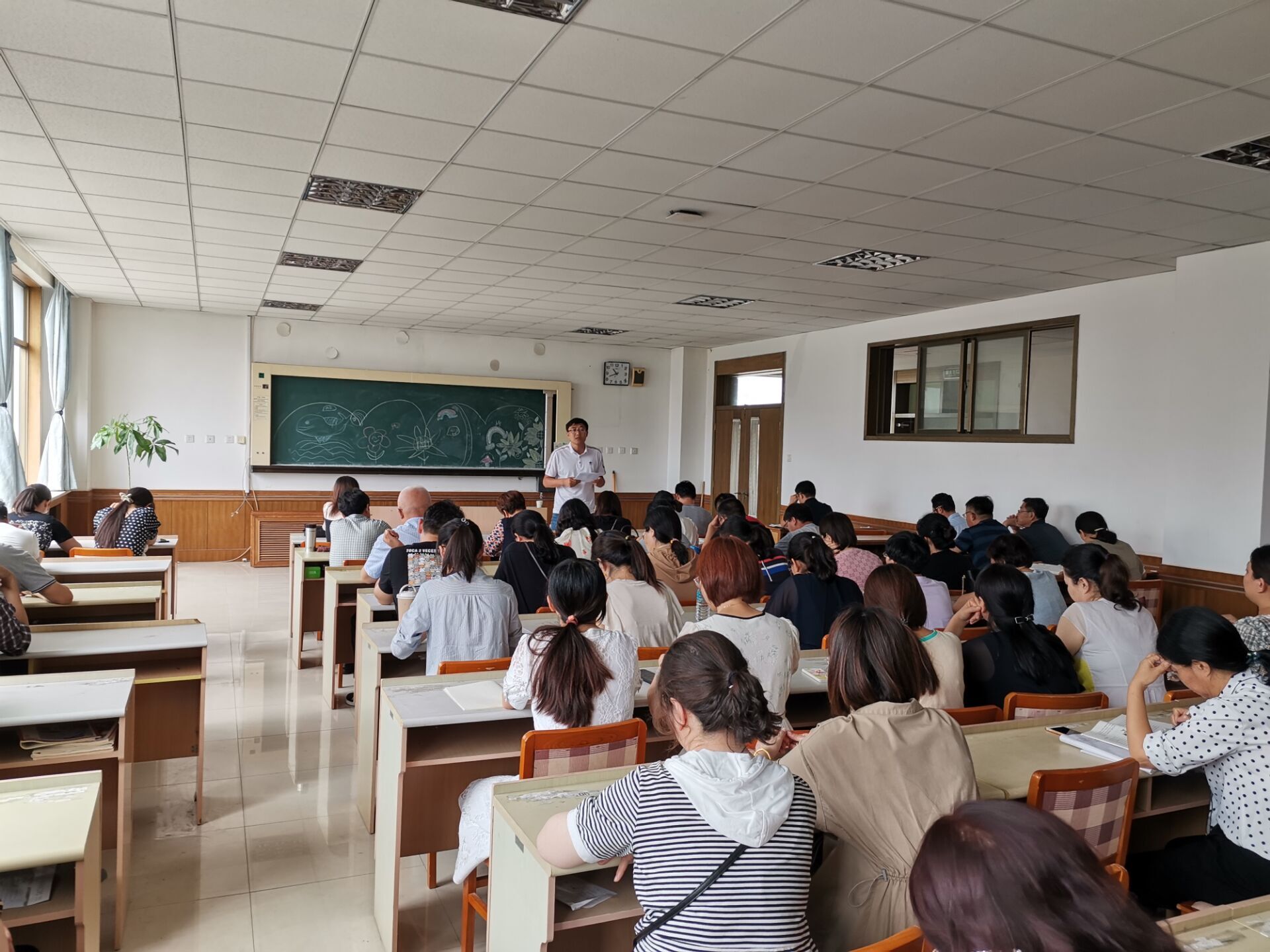 8月29日高二级部在办公楼四楼会议室召开全体教师会,窦常兴副校长、王海成主任、孟凡刚副主任、王琳琳副主任以及高二全体教师参加了会议,大家济济一堂聆听领导们的工作安排。