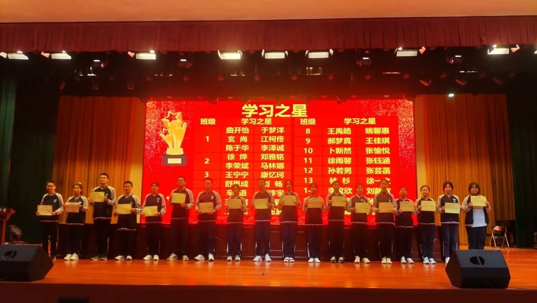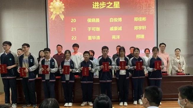 星光不问赶路人,时光不负有心人。本次大会首先公布了南北校区获得年级“学习之星”、“单科优胜奖、“进步之星”的同学名单,并由各班主任为获奖学生颁发荣誉证书,鼓励他们再接再厉,激励全体同学向榜样看齐,踔厉奋发,争创一流。