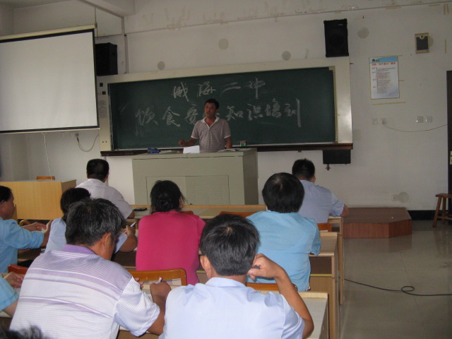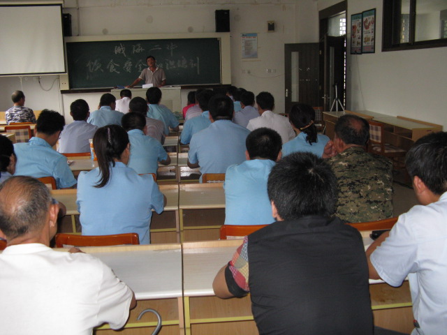 根据山东省教育厅关于转发教育部体艺司关于利用《学校食品安全管理与操作规范》教学片开展学校食堂从业人员培训工作的通知的通知和威海市食品药品监督管理局《食品安全预警公告》第2号的相关精神,我校于 2012年8月28日 在主校区综合办公楼一楼多媒体教室举行全校食堂从业人员饮食安全知识培训。