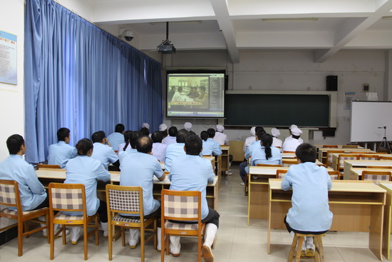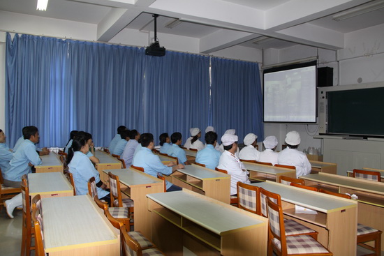 2012年10月21日 上午组织一餐厅和二餐厅工作人员看食品管理规范。