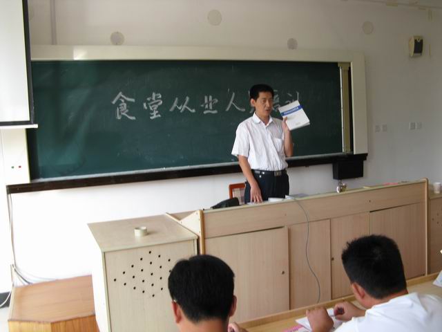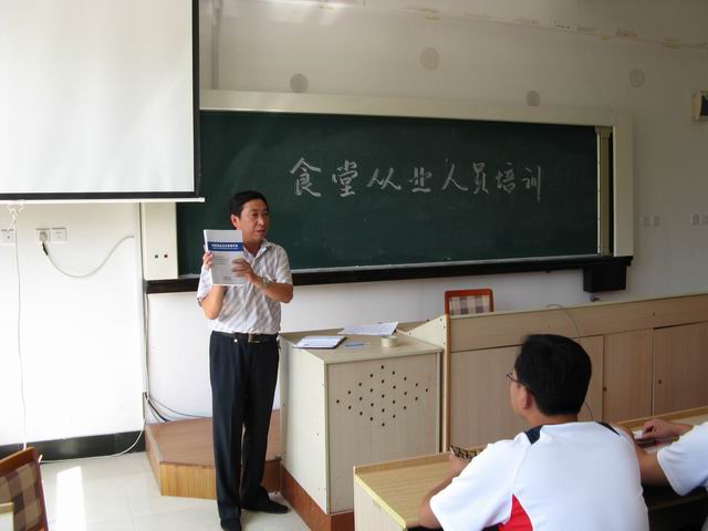 8月30日上午聘请市卫生局孔繁志科长来我校对食堂、商店从业人员进行培训,培训内容:食品安全法的解读,结合学校实践讲解业务技能,强化饮食安全。