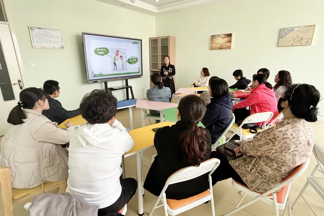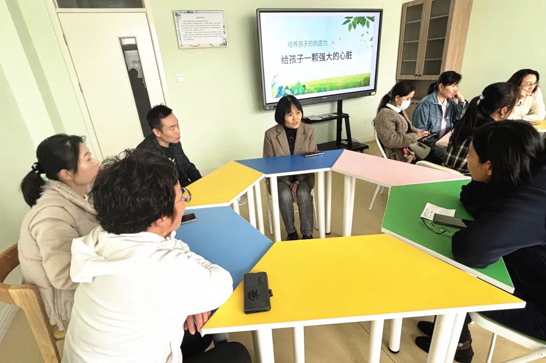 我校专职心理教师王颖老师以积极心理学理论为依据引入“抗逆力”主题,从“抗逆力的重要性”“我们的孩子为什么会脆弱”“如何提升孩子的抗逆力”“由家庭教育案例视频带来的启发”这四个方面,通过真实丰富的案例以及通俗易懂的语言,进行了细致、生动的讲解。随后,为更好地解决每个家庭面临的个性化教育困惑,采用团体辅导的形式,王颖老师、吕召兰老师引领不同的心理小组,分别就家庭教育过程中存在的具体问题,互相交流、分享、借鉴、学习,启发家长去寻找适合自己的教育方法。