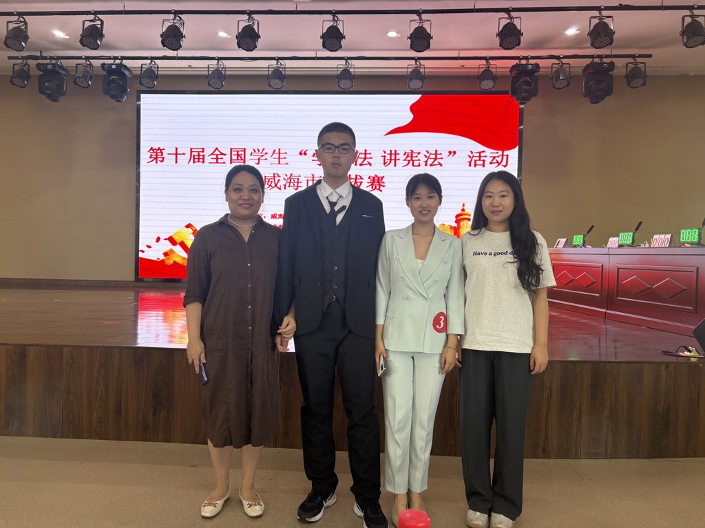 在9月21日举行的第十届全国学生“学宪法 讲宪法”活动威海市选拔赛中,威海二中代表队迎来历史性时刻。高二15班李玥彤同学与高二1班田泽同学不负众望,双双斩获特等奖,创造“一校双冠”的赛场传奇,更凭借出色表现分别包揽代表威海市参加该赛事省级比赛的唯一资格,彰显我校在宪法教育领域的深厚积淀。