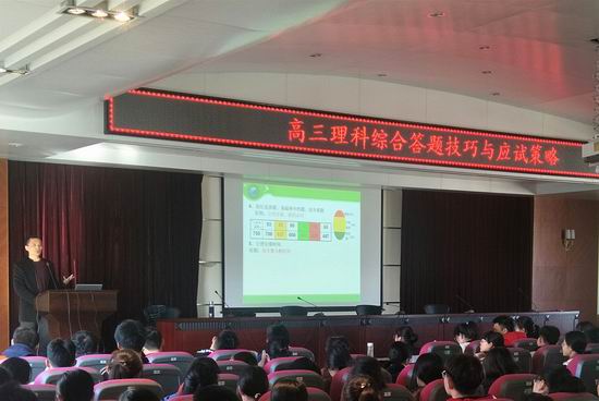 为进一步提升学生综合学科解题能力,高三级部综合学科组长王本胜老师和史向丽老师,分别就理综、文综的答题技巧与应试策略给南北校区高三学生做现场指导。