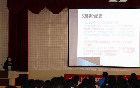 为加强师生自我防病意识,提高防病能力,11月26日下午,威海二中特邀威海市环翠区疾病预防控制中心艾滋病防治科工作人员及威海市环翠区卫生和计划生育监督执法大队学校与生活饮用水卫生监督科工作人员到校对师生进行了“艾滋病防治知识专题宣讲”活动。