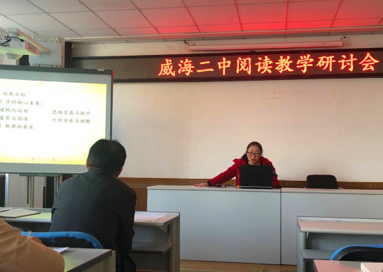 在领导的肯定与支持下,在座的语文老师都对学校未来的教学改革充满了信心:以“大语文观”为基础,以阅读教学为主线,以学科素养为核心,以高考试题为导向,合力进行语文教学改革,建构威海二中“大阅读”课堂教学模式。
