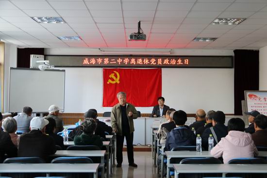2018年10月11日上午,威海二中离退休老党员们欢聚一堂,回忆峥嵘岁月,畅谈入党初心,重温入党誓词,唱响红歌,共同庆祝“政治生日”。 活动伊始,党委副书记于秀程致词,并为老党员一一送上“政治生日”贺卡,向全校的离退休老党员表示热烈祝贺和崇高敬意,感谢他们为学校发展所作的贡献,充分肯定了离退休支部老党员们的工作,表达了学校的关爱之情,并对下阶段的意识形态工作提出了要求。他说,每位党员都有两个生日,一是自然生日,标志着一个生命的诞生;另一个是政治生日,从入党之日起,我们的政治生命就开始了,牢记这个日子,是对党的忠诚和信仰。今天,我们为大家庆祝“政治生日”,不仅是要回忆激动人心的入党历程,感谢赐予我们政治生命的党,更要不忘入党初心、牢记党员使命,开启自己政治生命的新征程。 接着离退休党支部组织委员带领全体党员面向鲜艳的党旗庄严宣誓,重温入党时的铮铮誓词,一下就把大家的思绪拉回到入党的那一天。大家纷纷回忆起自己的入党故事和入党感受。老党员代表在发言中说:“今天我非常激动,虽然入党多年,但集体过政治生日还是头一次,此次活动对自己有很大的意义。”老党员代表的发言让在场的所有老干部感受到了老同志对党和国家的热爱,也进一步认识到党员身份的使命感、荣誉感,气氛非常热烈,整场活动走向高潮。 “为老党员过政治生日”是离退休党支部发起的一项重要活动,将“党员政治生日”与重温入党誓词相结合,促进了离退休老党员进一步坚定理想信念、增强党性修养、发挥模范作用。活动结束后,在场老同志纷纷表示,要发挥自身优势,传递正能量,继续为学校发展发光发热。
