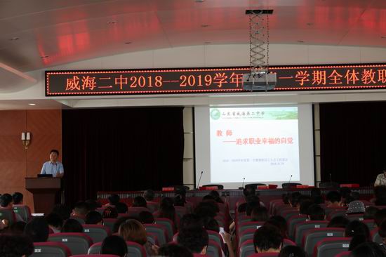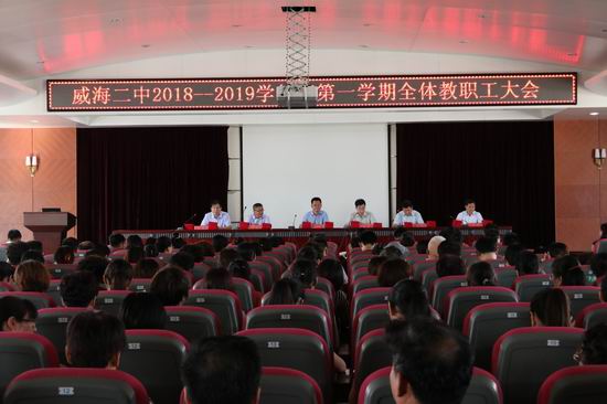 8月29日,威海二中召开2018—2019学年第一学期全体教职工大会,对上学期的工作进行总结、表彰,同时部署安排新学期的工作任务。大会由校党委副书记于秀程同志主持。