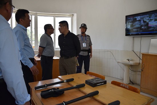 检查组先后实地查看了学校校门口值班保卫室的安保设施以及门卫对进出人员、车辆、物品进行检查和登记的台账,详细了解了学开学以来学校各项安全工作的开展情况和校门口安全值班人员配备情况。查看了学校食堂是否建立健全食品安全管理制度;是否按照规定进行索票索证并建立台账;食品从业人员是否进行了健康体检。学校消防设施配备是否符合要求,学生应急通道是否符合规定;学校是否定期和不定期进行隐患排查治理工作;学校是否开展应急演练等。