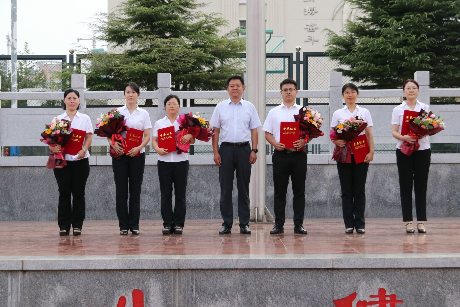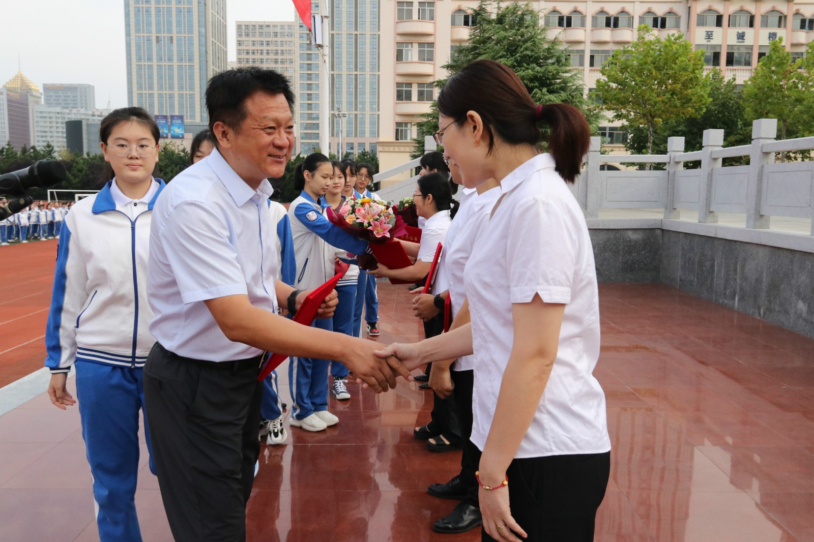 典礼在庄严的国歌声中拉开帷幕。学校首先对2019-2020年学年涌现出的优秀教师、优秀学生进行表彰,向他们颁发荣誉证书,以肯定他们取得的成绩,并激励全体师生向榜样看齐,再创学校新辉煌。张良校长在致辞中鼓励同学们,奋斗青春要树立家国意识、明确使命担当,要笃学致知、明德至诚。同学们要执时光之笔,以奋斗为墨,储学修能,书写出青春奋发、担当使命的璀璨篇章!希望全体老师秉承“审知善导,公诚勤勉”的二中教风,用饱满的热情和百倍的努力,扮演好领航者的角色,为把学生培养成“至诚厚德、致知求实、胸怀若海、博学广志”的新时代创新型英才不懈奋斗!