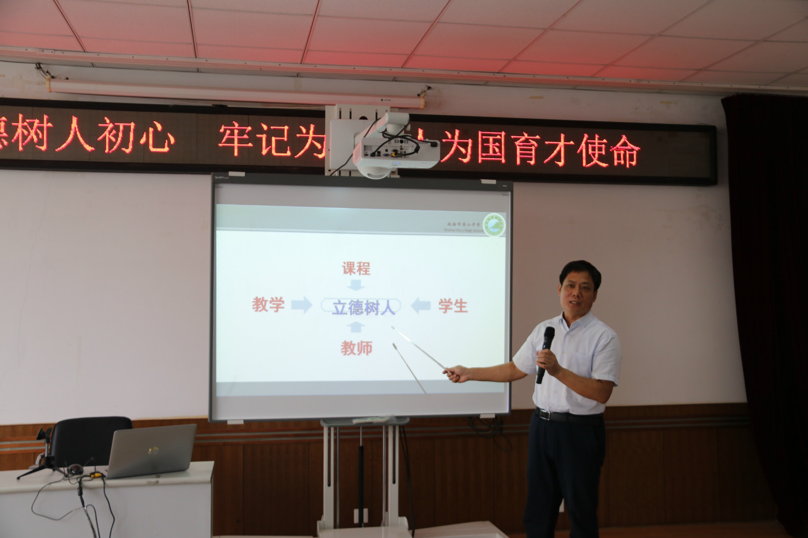 9月12日,我校由教务科研处牵头,党政办公室、学生处、年级部共同为青年教师举行了师德师风师能的专题培训。培训由战振宁副校长主持,张良校长、刘中山副书记及相关处室负责人,与青年教师成长共同体的30位青年教师一起参加了会议。